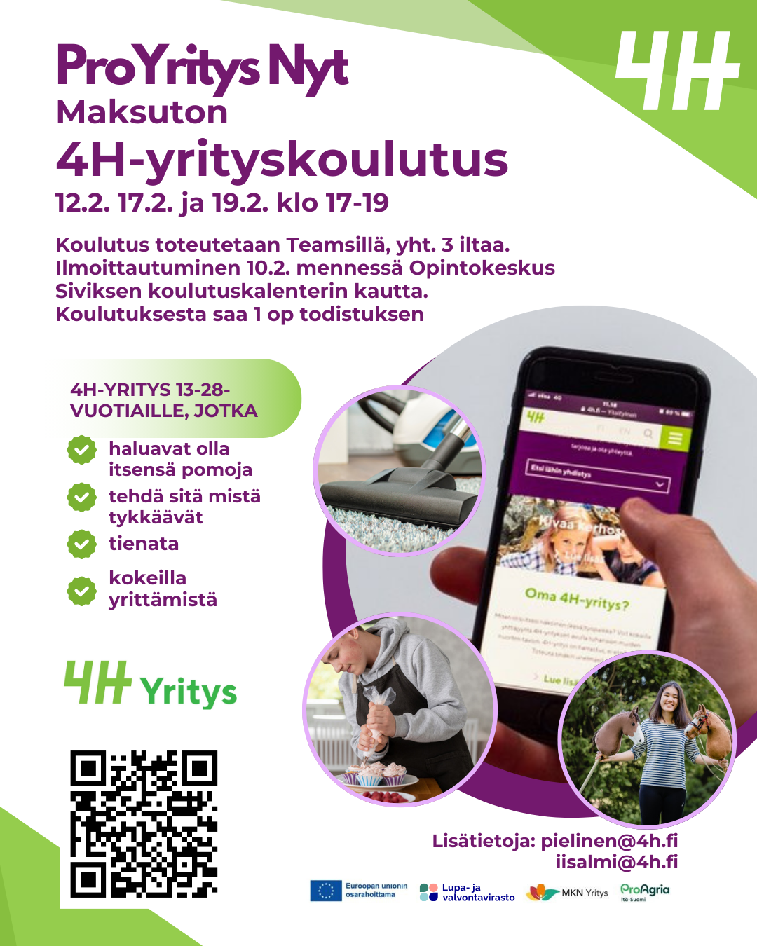 Nuori, haluatko tutustua 4H-yrittämiseen, tienata rahaa ja kokeilla yrittämistä? Nyt on tilaisuutesi! Ilmoittaudu maksuttomaan 4H-yrityskoulutukseen ja opi, miten perustat oman yrityksen – juuri…