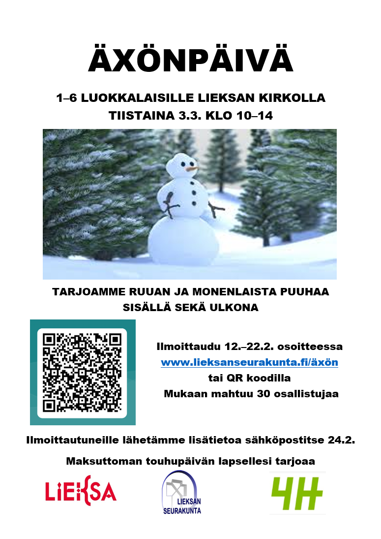 Äxön -päivään ilmoittautuminen 12.-22.2. Mukaan mahtuu 30 lasta.
