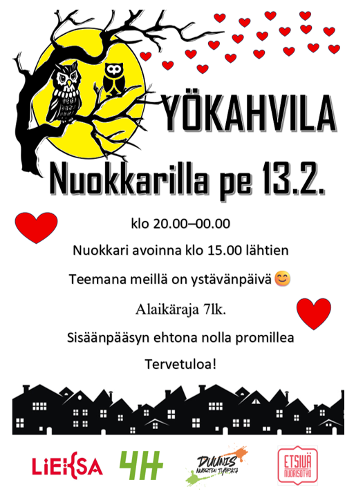 Helmikuun yökahvilaa vietetään ystävänpäivän merkeissä. Muistathan 0 promillea.