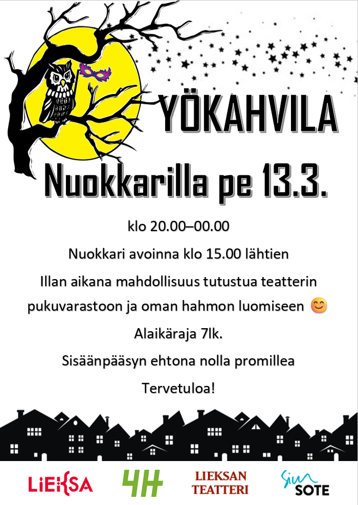 Tervetuloa nuorten yökahvilaan Nuokkarille. Muistathan 0 promillea.