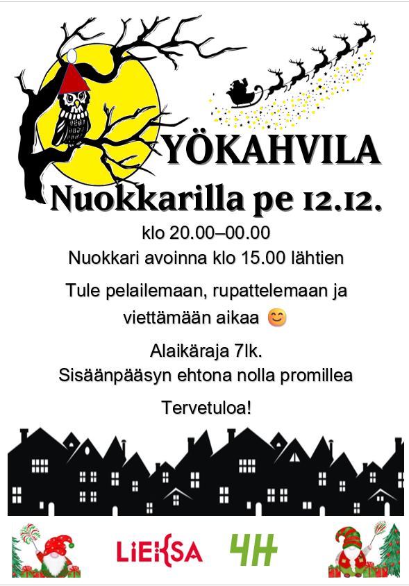 Tervetuloa nuorten yökahvilaan Nuokkarille pe 12.12. Muistathan nolla promillea.